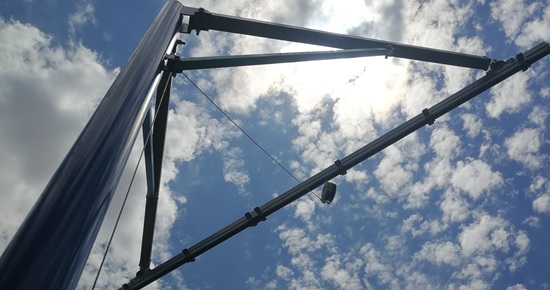 esta anclado a su Riel junto con su Carro transportador, evitando el efecto péndulo.